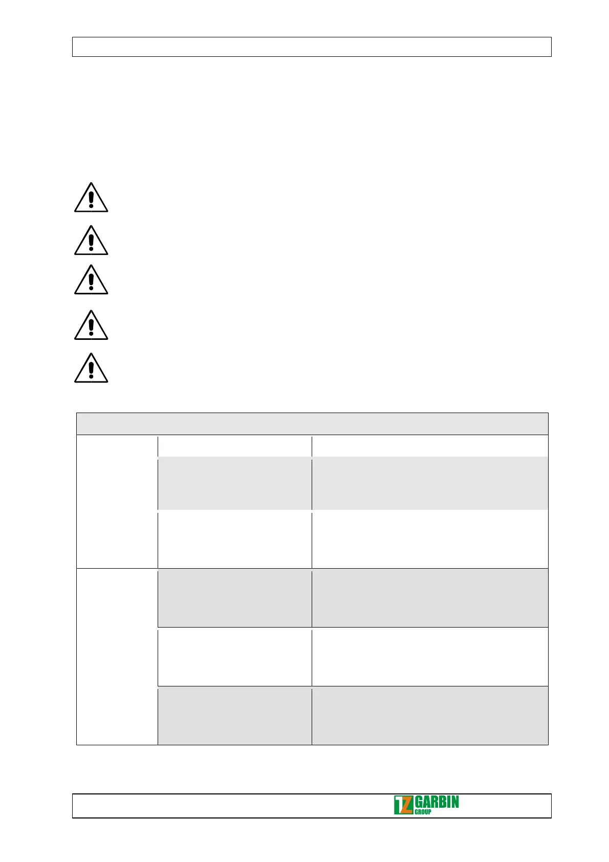 BEFORE PERFORMING ANY MAINTENANCE WORK, TURN OFF AND BRAKE THE MACHINE