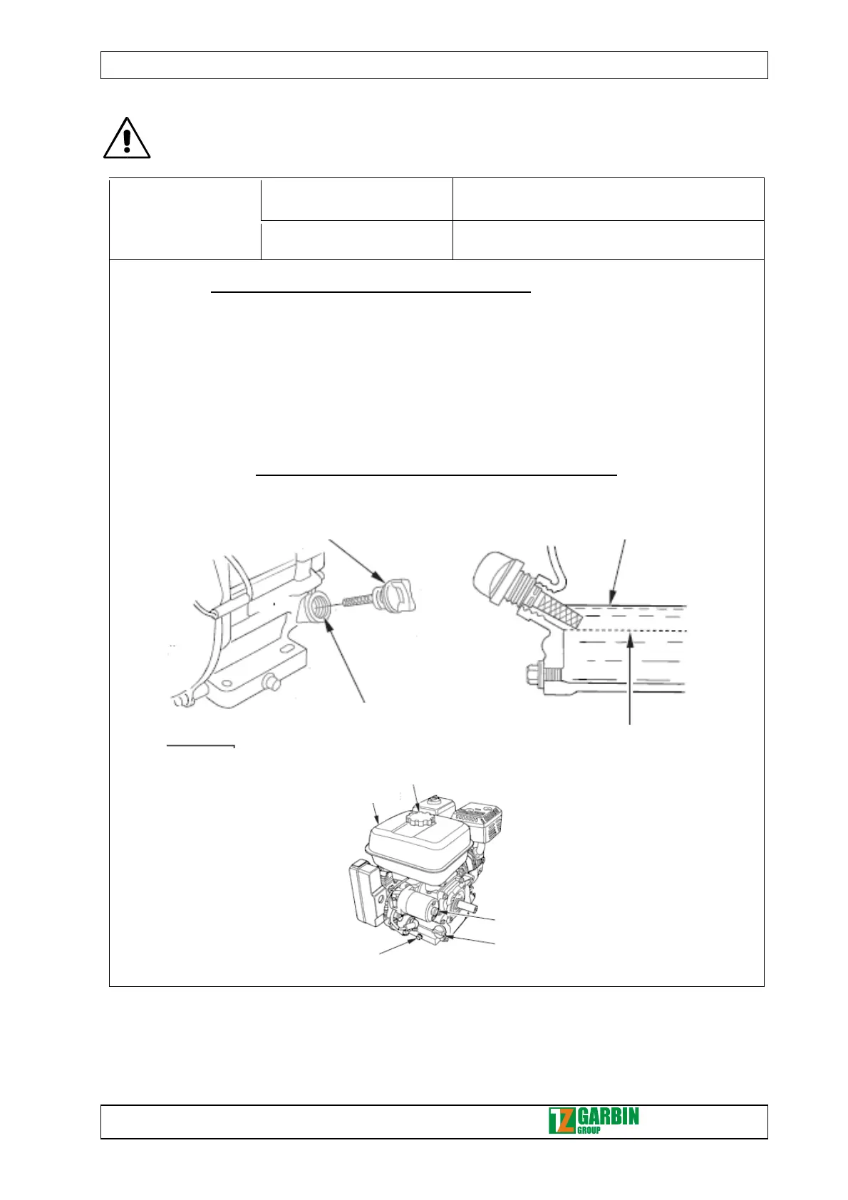 TYPE OF OPERATION CHECKING THE OIL LEVEL