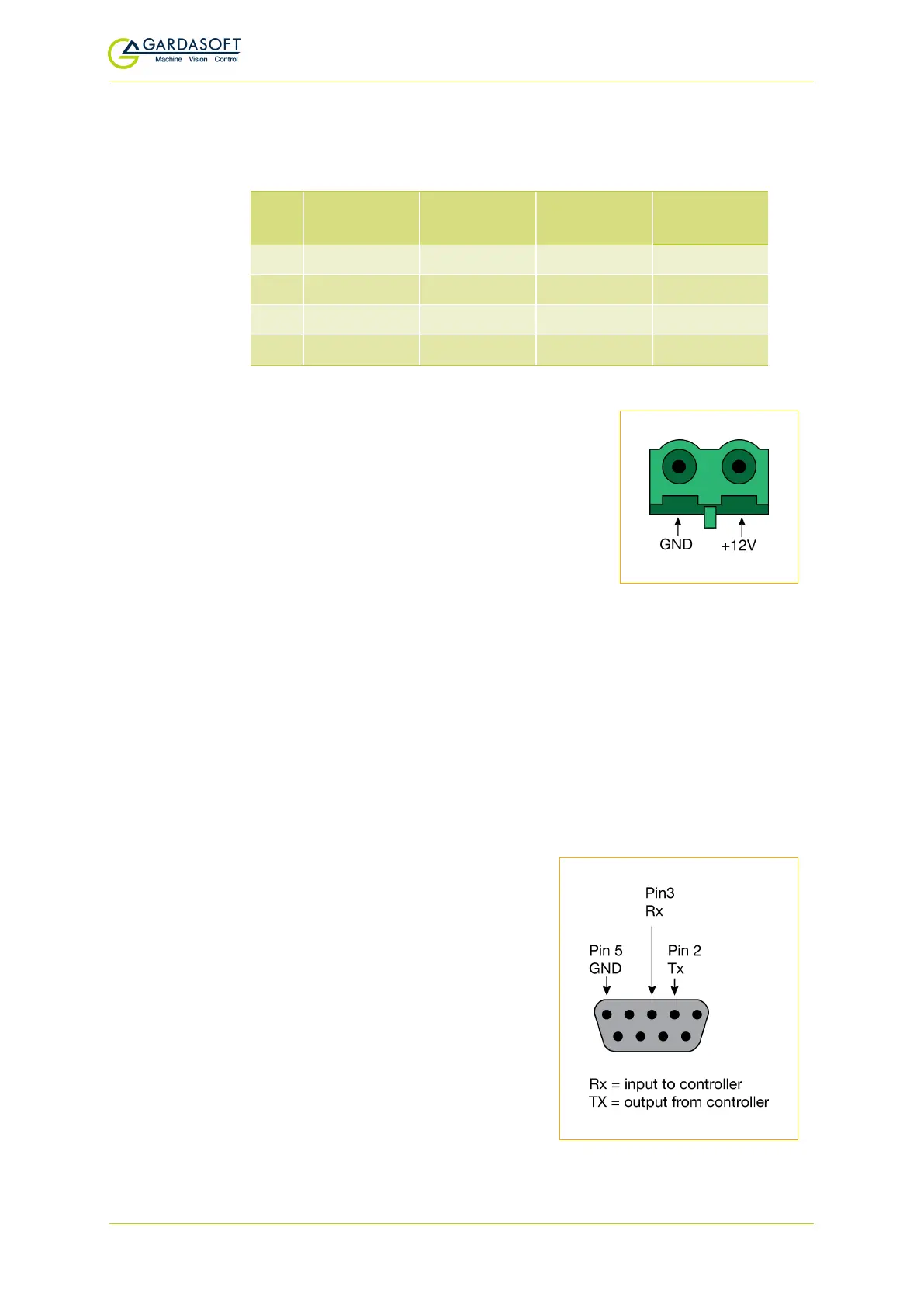 The pin allocation for the serial