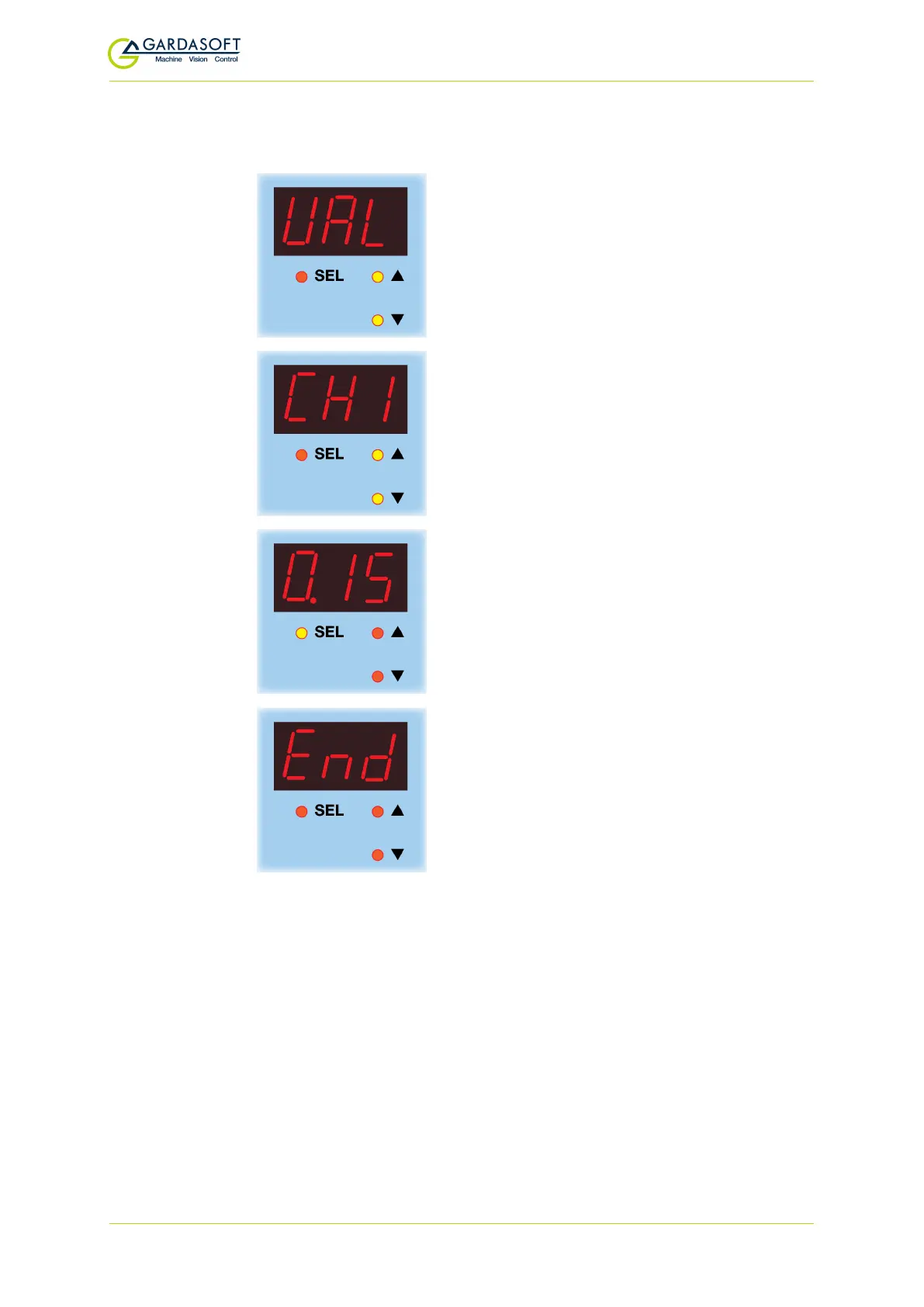 To view the output current, press the SEL button for one second and