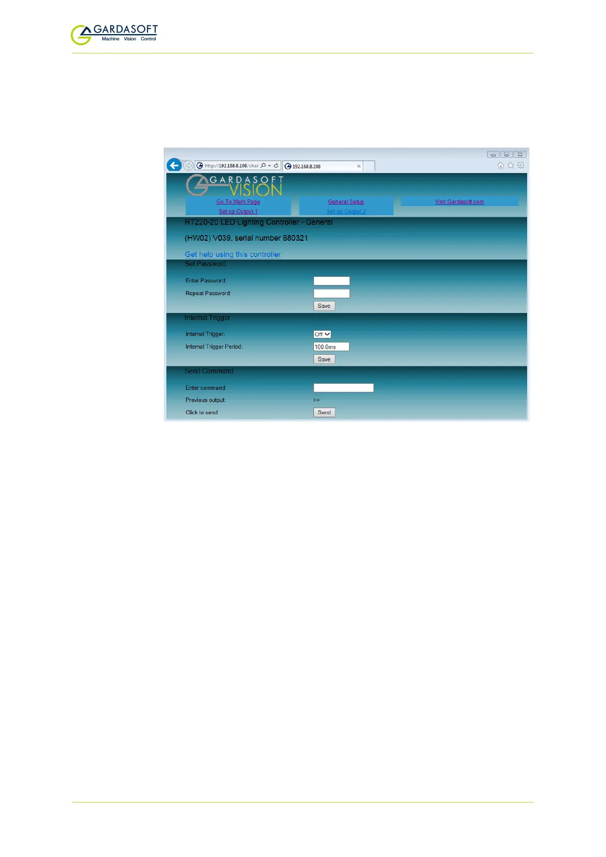 GARDASOFT RT 20 Series - General Setup Page