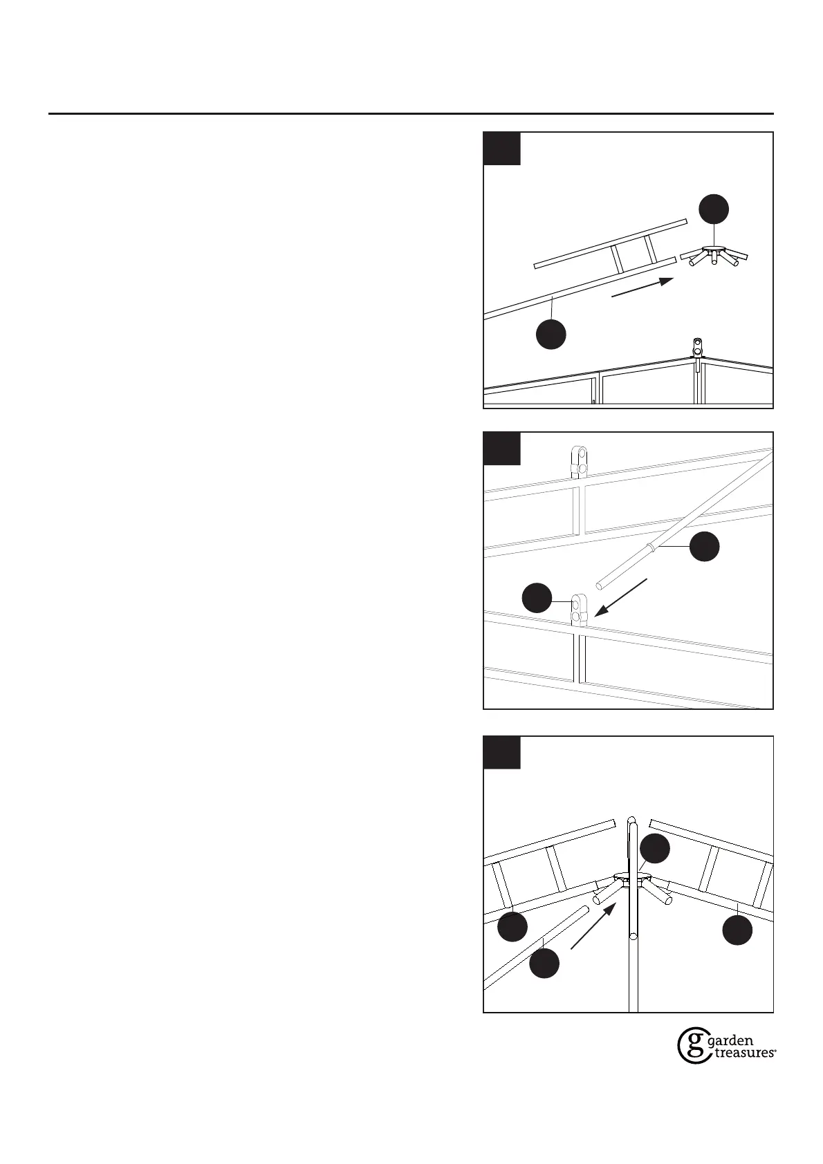 9. Insert middle bars (H) into top connector (I). Secure