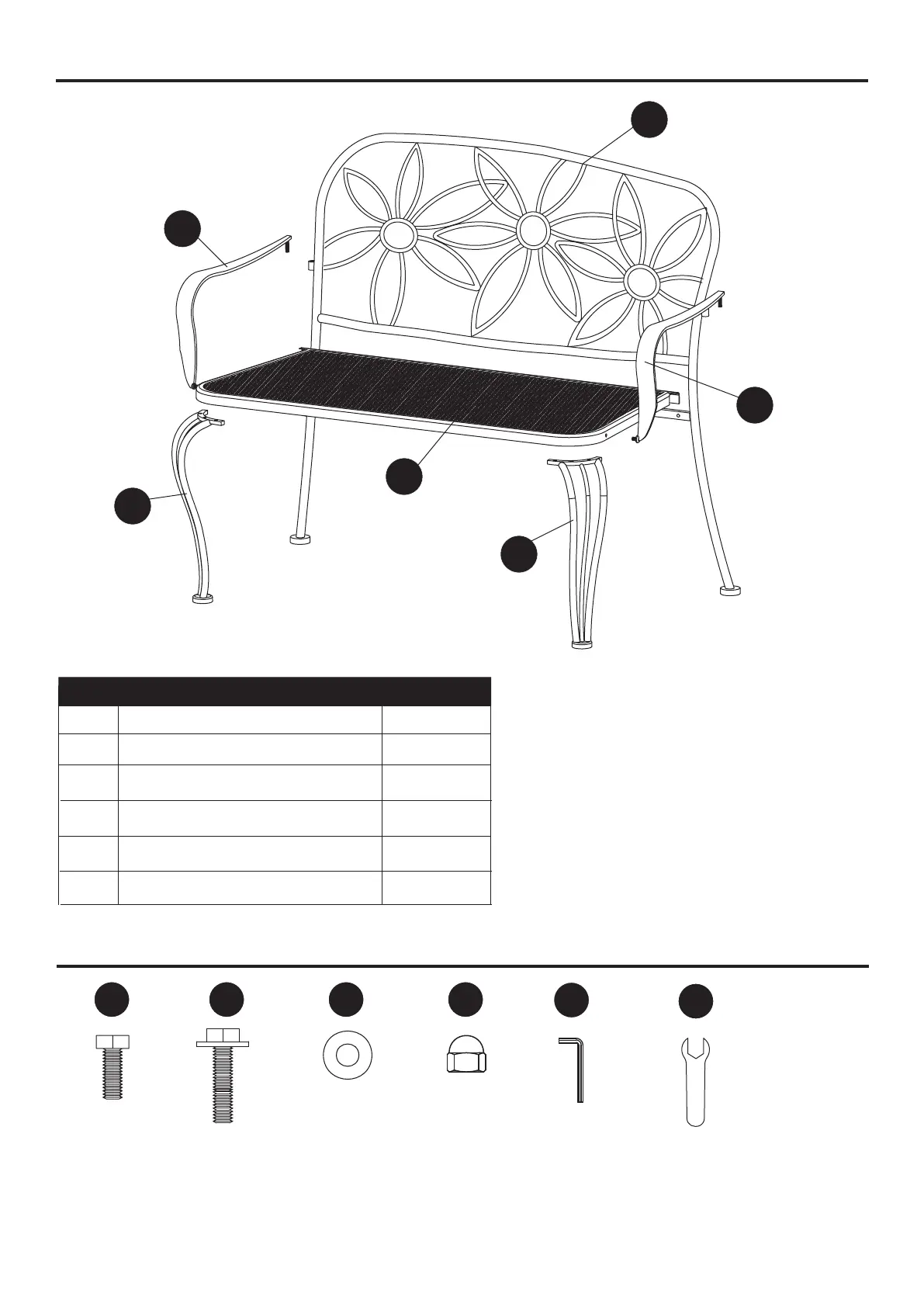 Garden Treasures DAISY BENCH - Package Contents; Bench Components; Hardware Contents