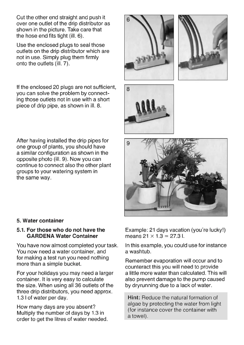 Gardena 1265 - Operation and Maintenance; Water Container Selection and Use