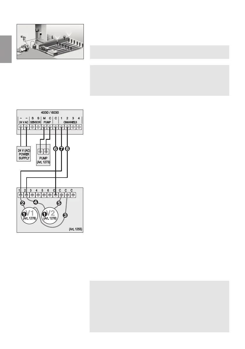 The example shows the connection of 2 valves Art. 1278 in the