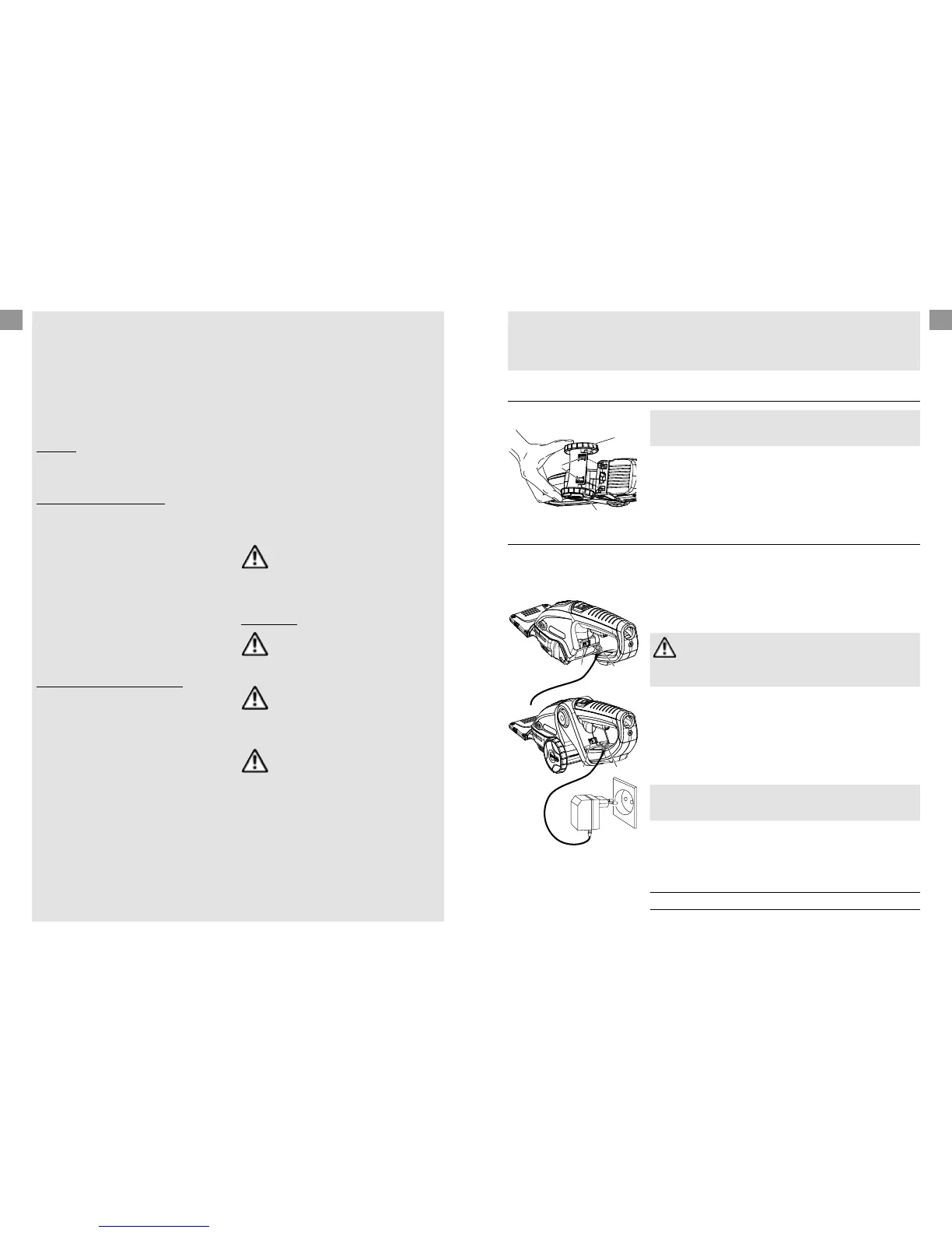 V Protect the battery charger from damp or wet