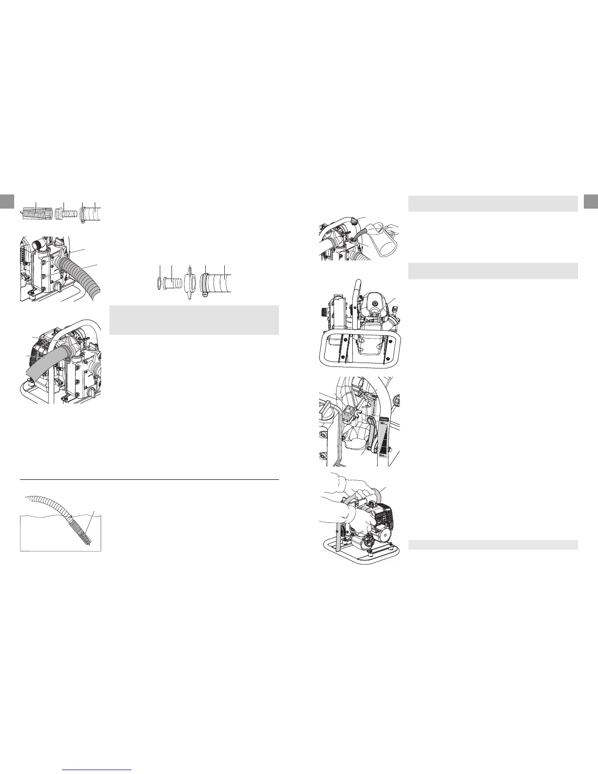 v Before starting, always prime the pump and fill the pump