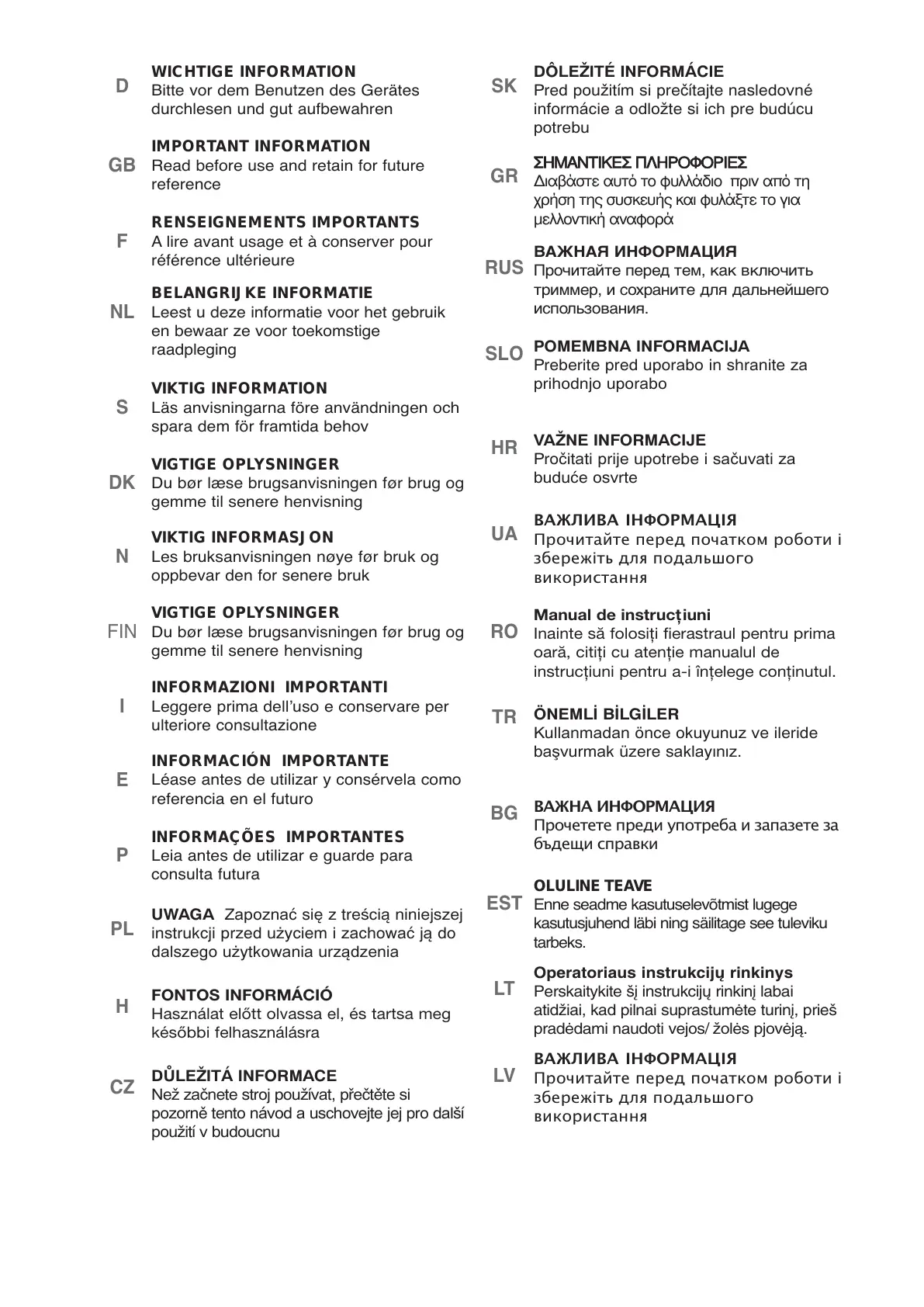 WICHTIGE INFORMATION