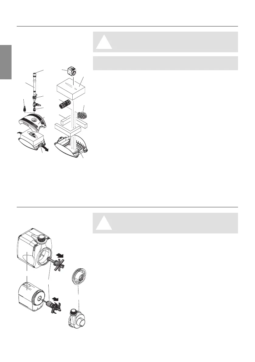 V Disconnect the mains plug of the pump before