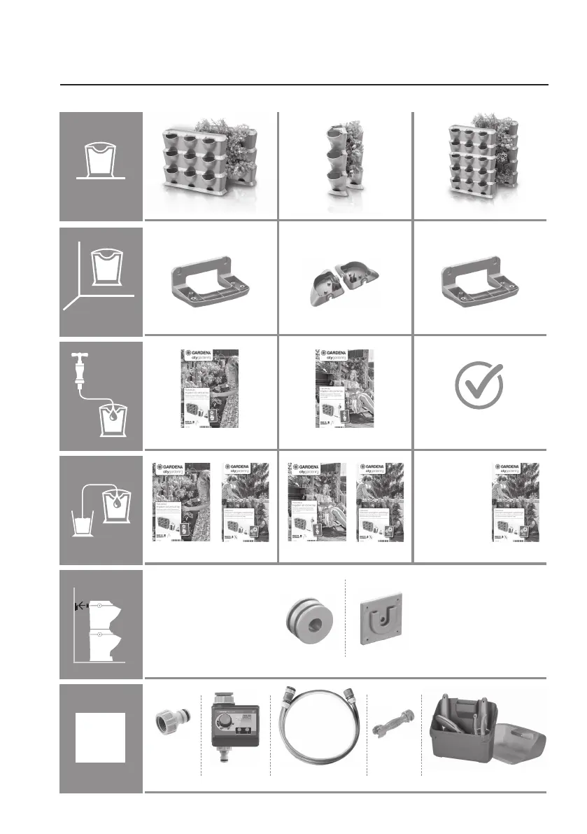 Gardena NatureUp! - NatureUp! Product Range and Configurations; On Floor System Configurations; On Wall System Configurations; Optional NatureUp! Accessories