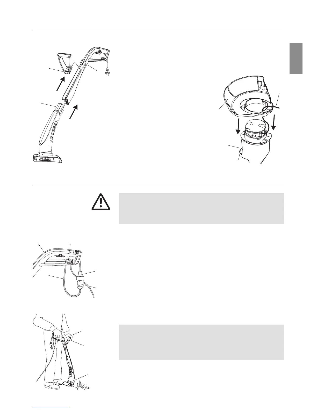 v Hold the trimmer by the top of the handle