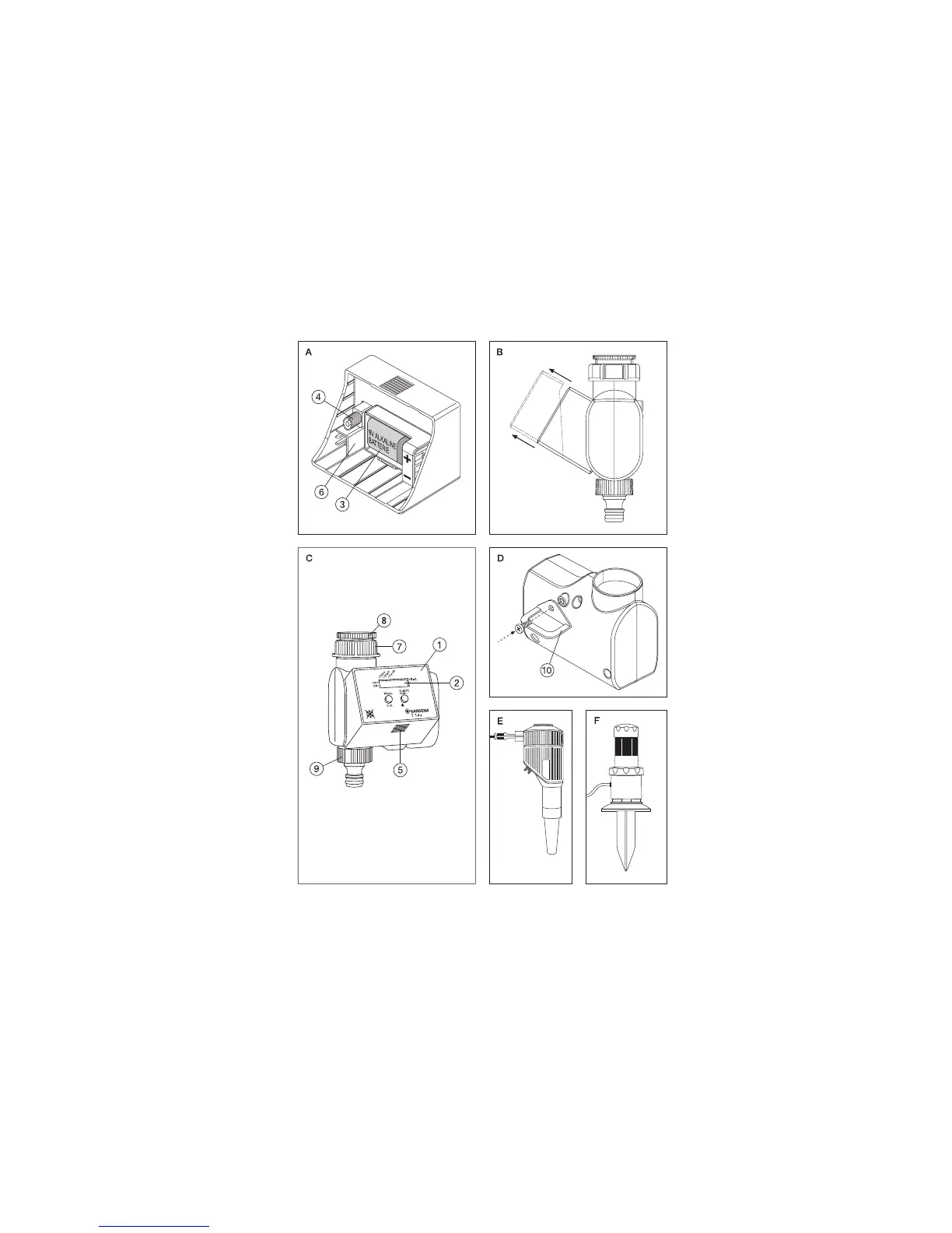 Gardena Water Timer Electronic T 14 e - Connecting Water Timer to Tap; Inserting Battery; Function Keys and Display