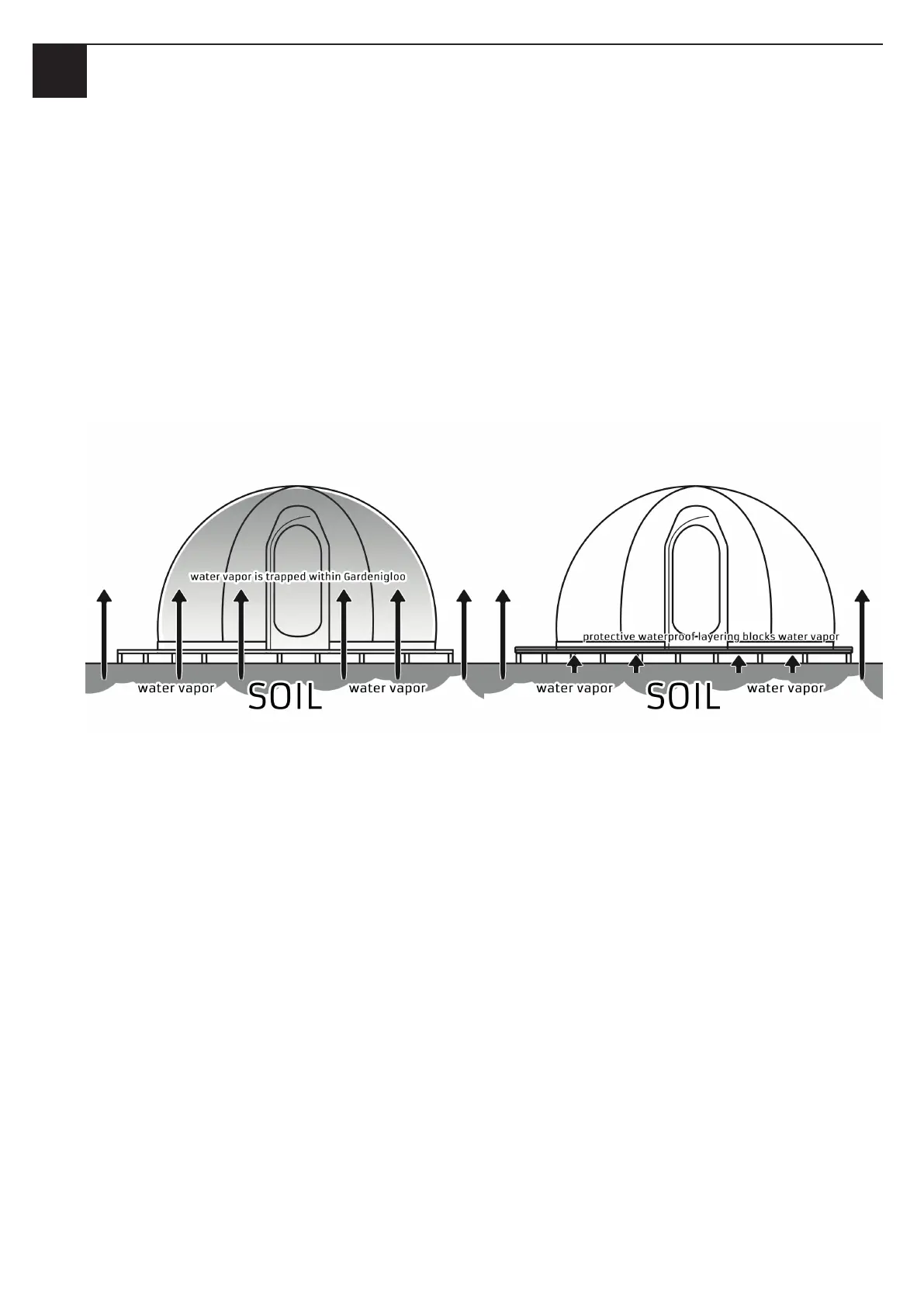 • This water vapor may leave the soil, enter and become trapped in the Gardenigloo causing