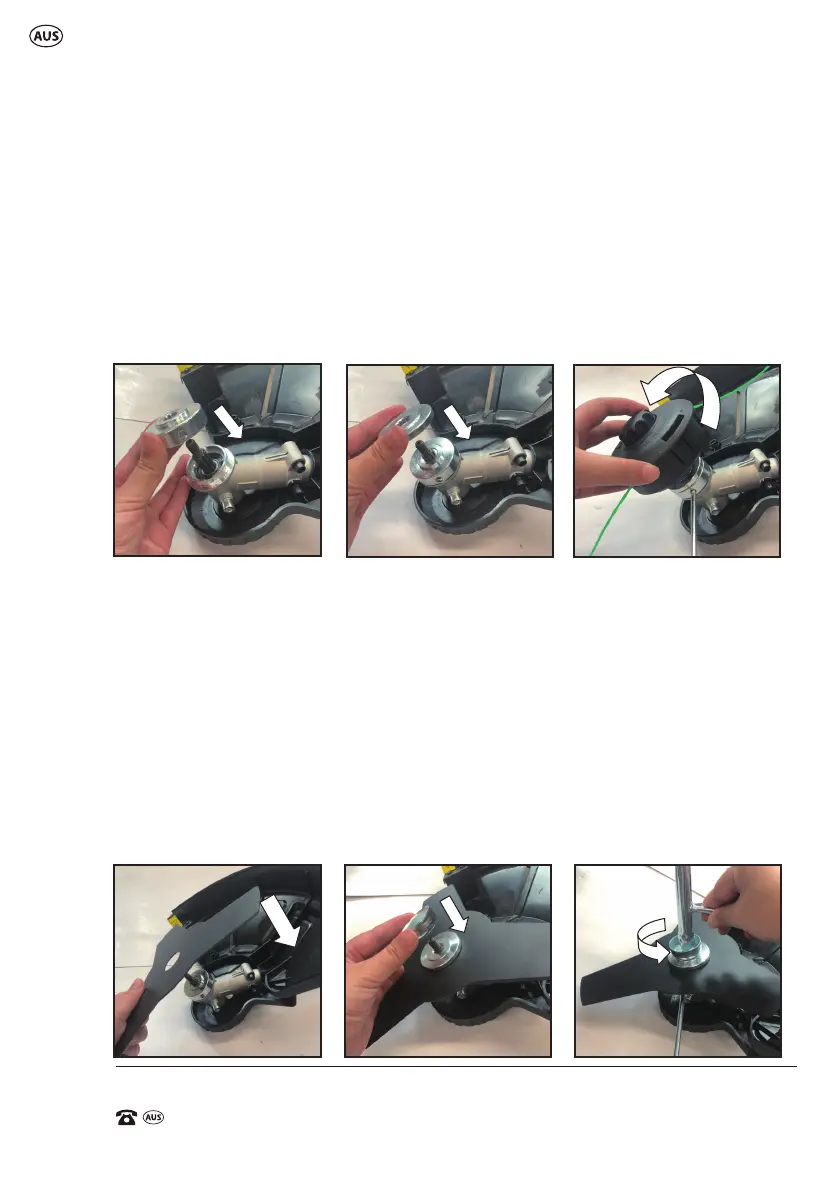 4) Screw the line trimmer spool (9) onto the spindle by turning it anti-