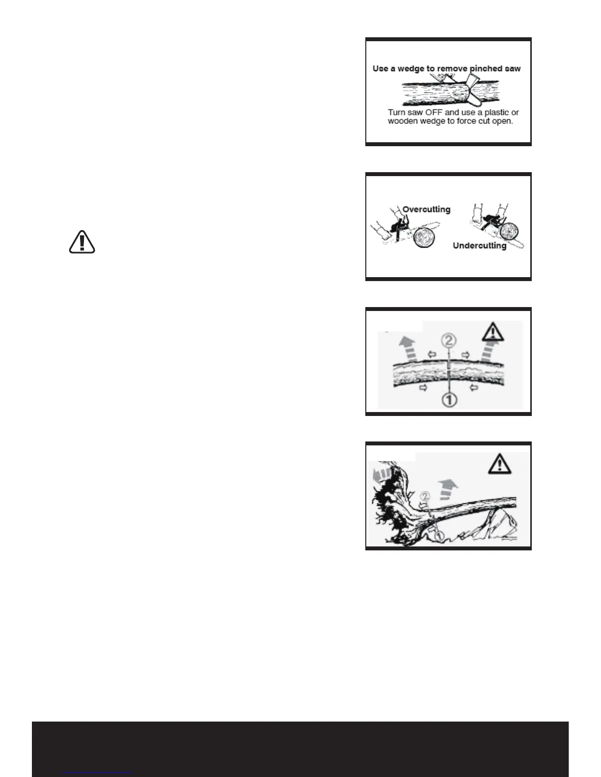 the saw from pinching. See illustrations for cutting logs