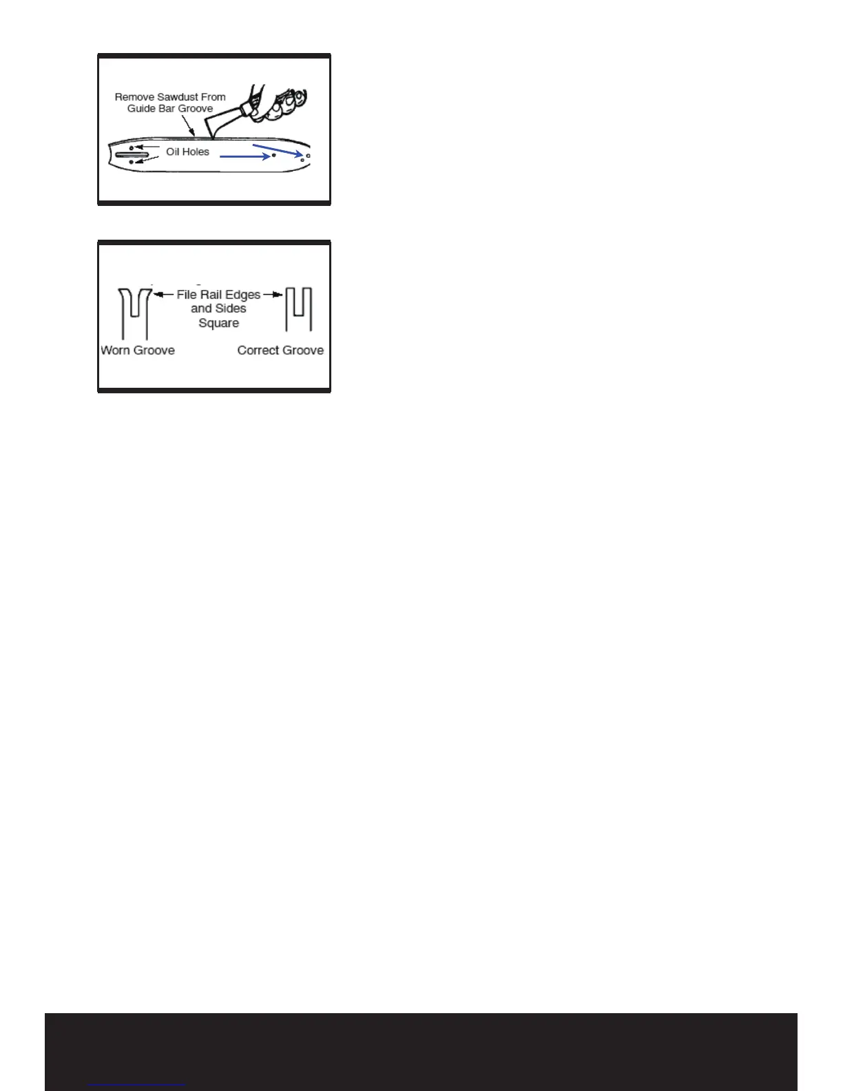 sharpened. A worn guide bar will damage the chain and