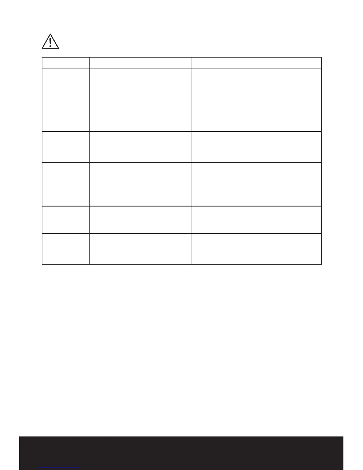 TROUBLESHOOTING TABLE