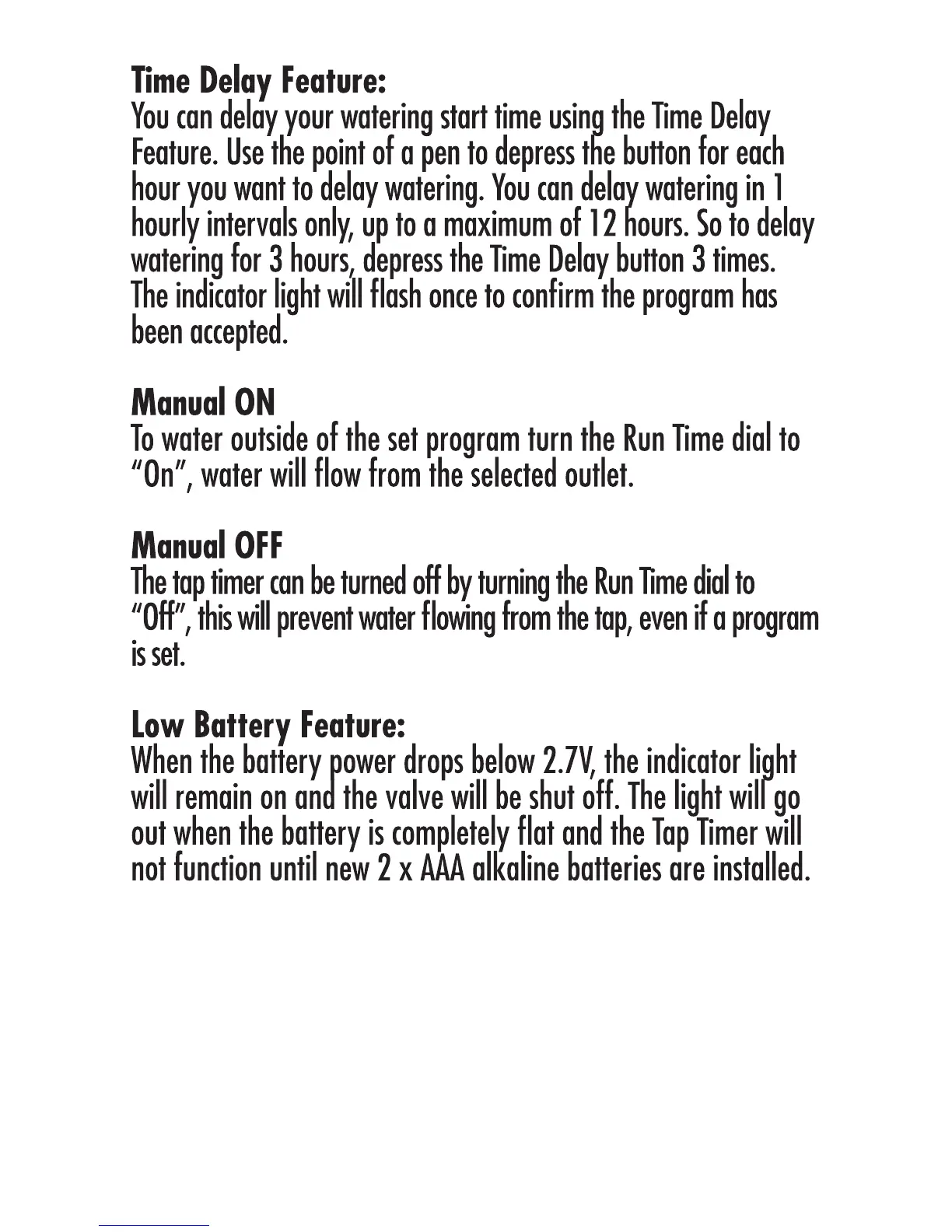GardenMate Two Dial Automatic Tap 1017641 - Operational Features