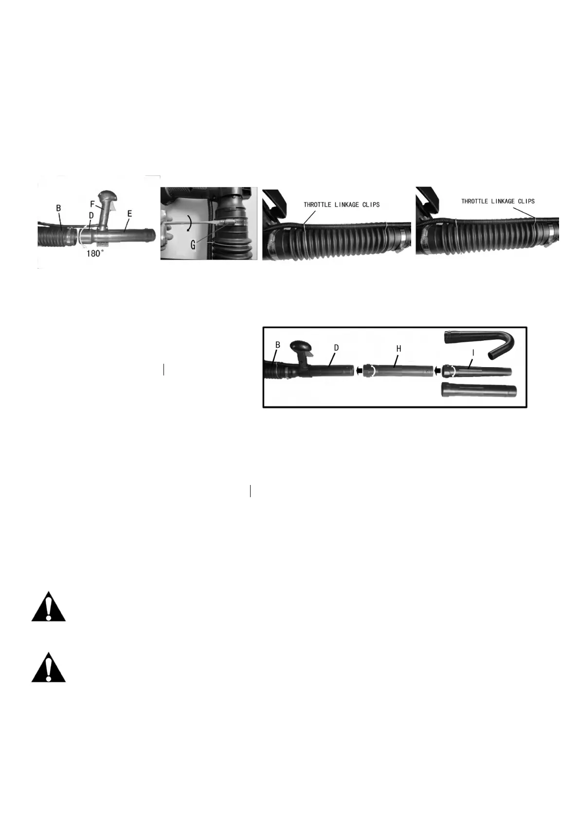 NOTE: keep the throttle cable as straight as possible when connecting the blower tubes.