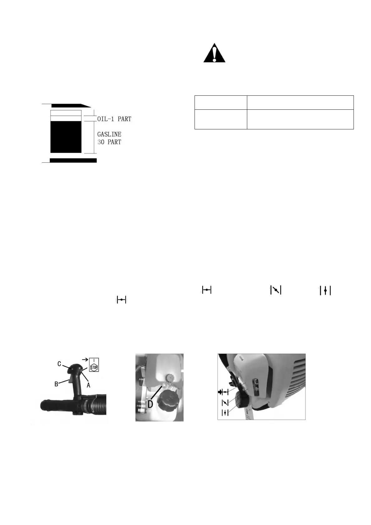 gasoline to allow incoming gasoline to mix with oil. Engine warranty. Gasoline