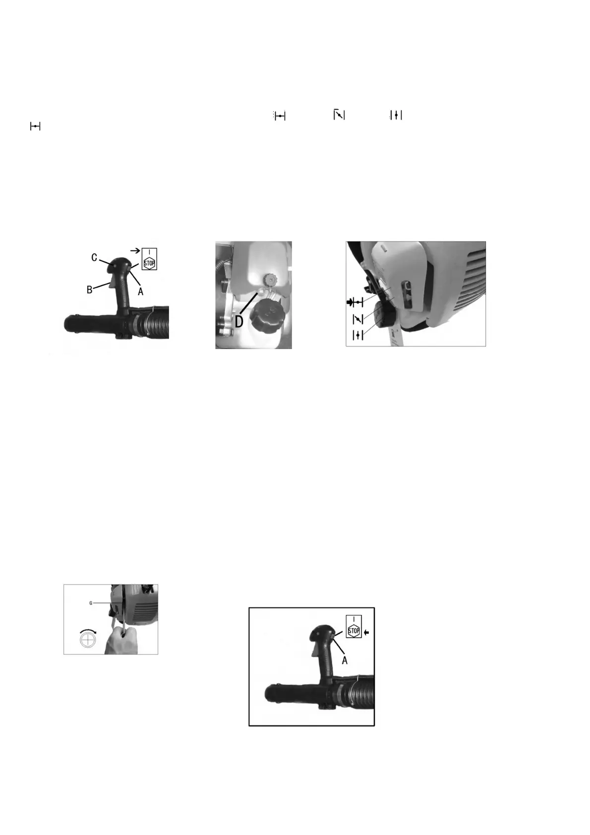 6. Appuyez le bouton de verrouillage (C) et appuyez sur l’accélérateur à gâchette (B) pour le fonctionnement.