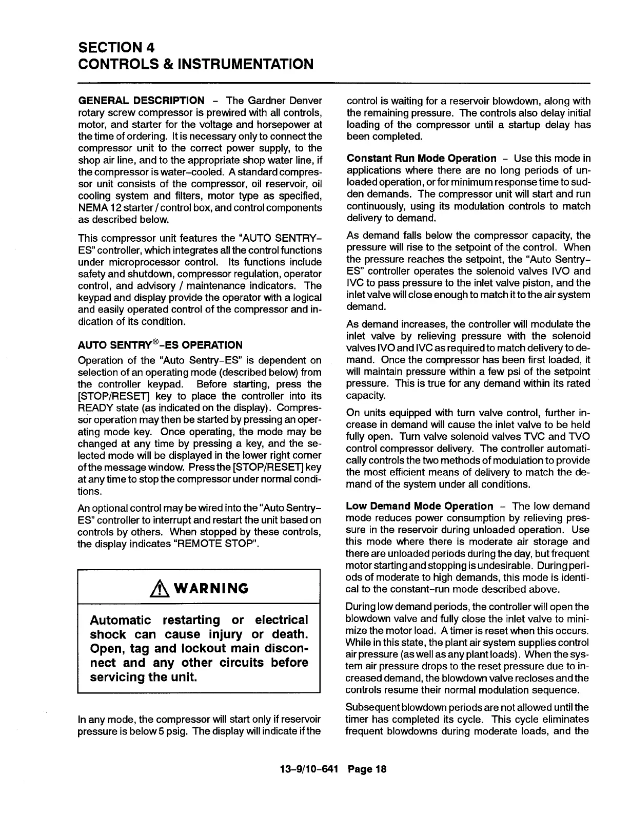 control compressor delivery. The controller automati-