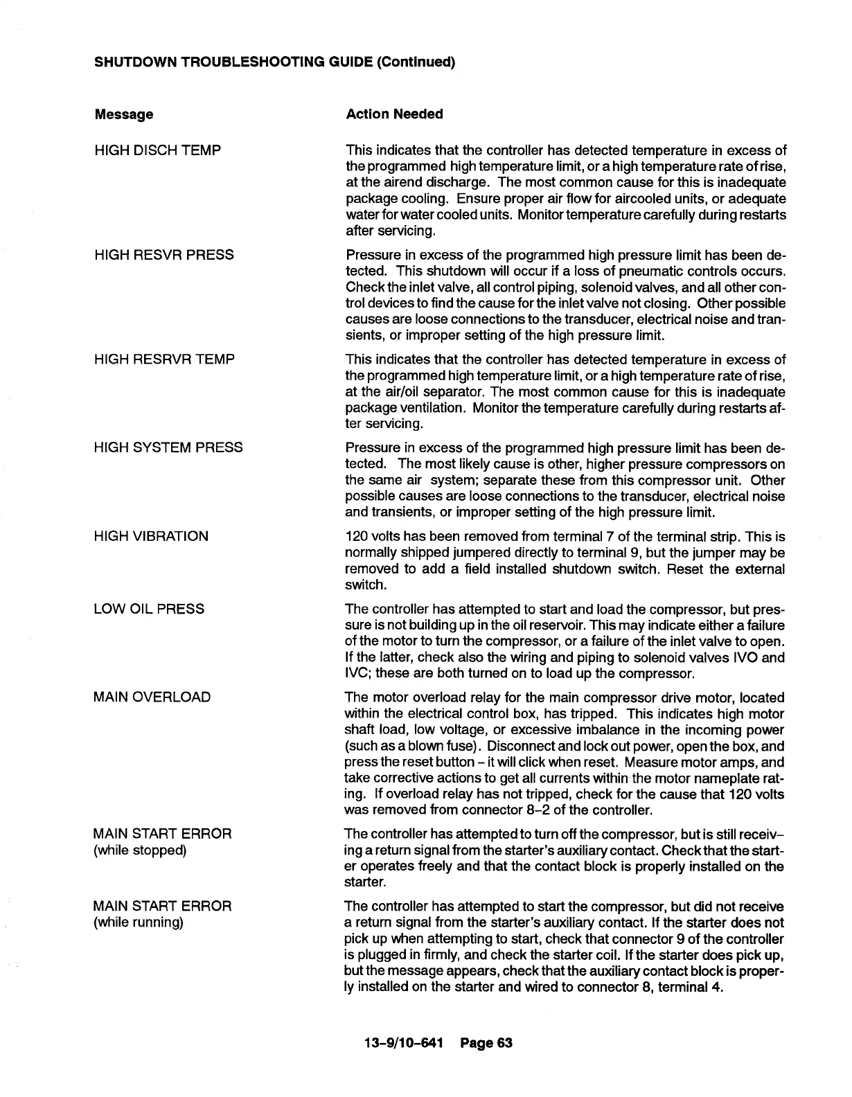 at the airend discharge. The most common cause for this is inadequate