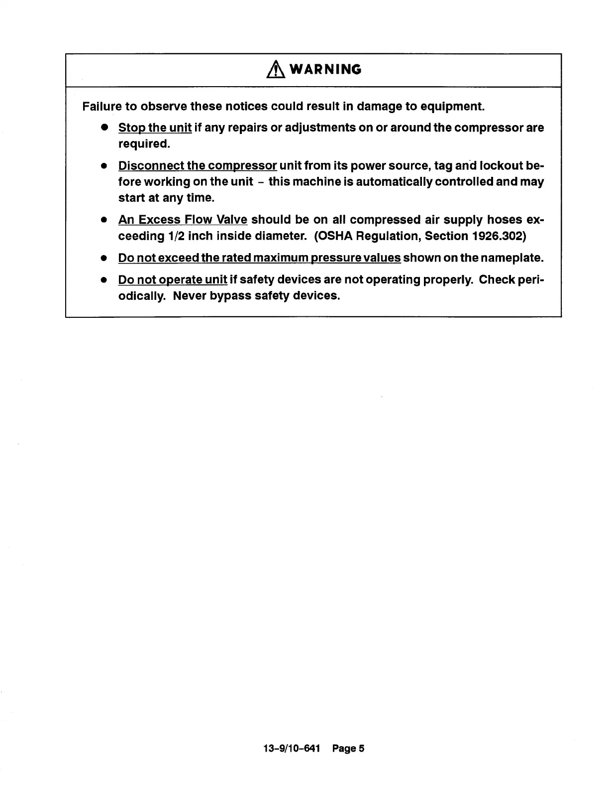 Disconnect the compressor unit from its power source, tag and lockout be-