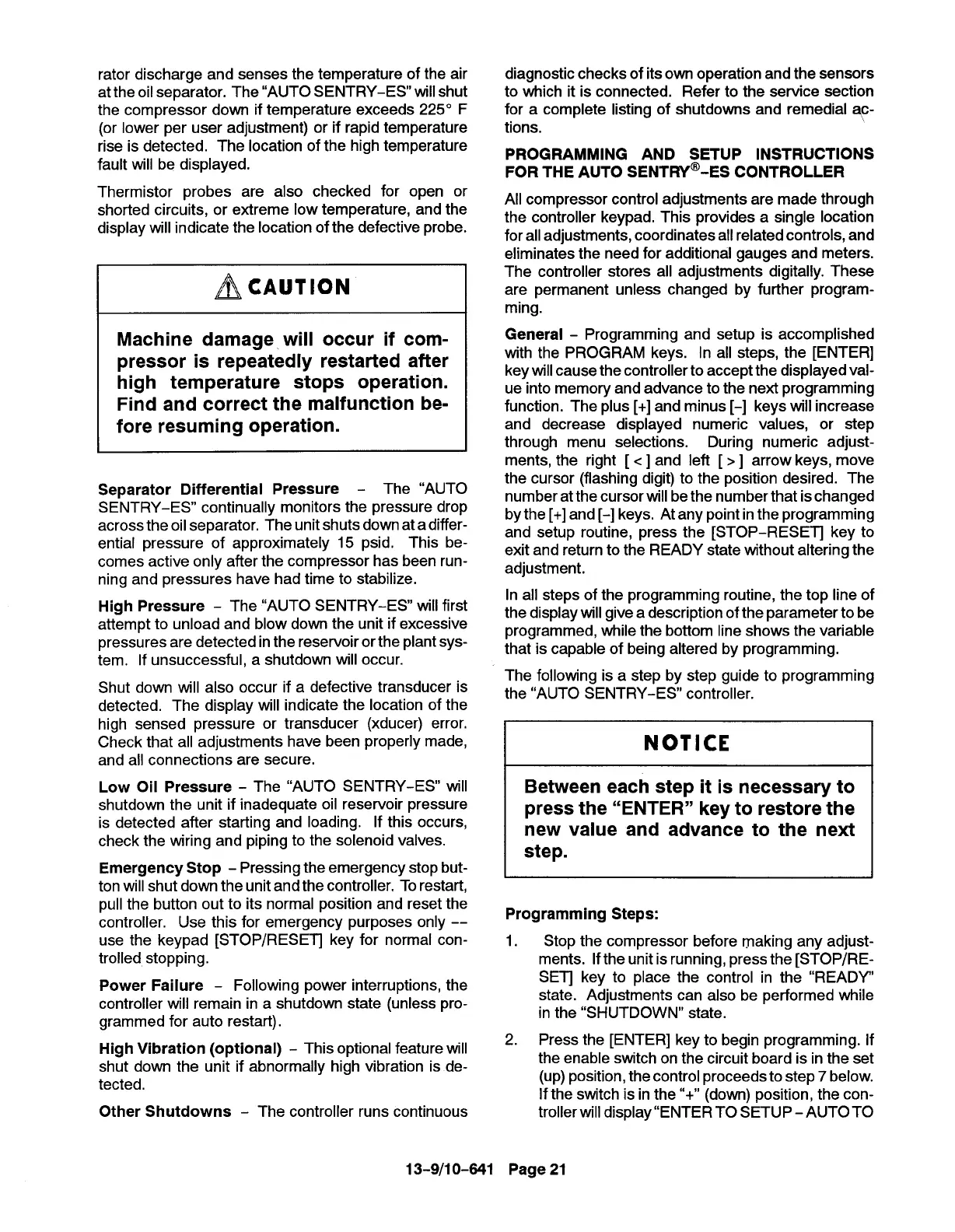 at the oil separator. The “AUTO SENTRY-ES will shut