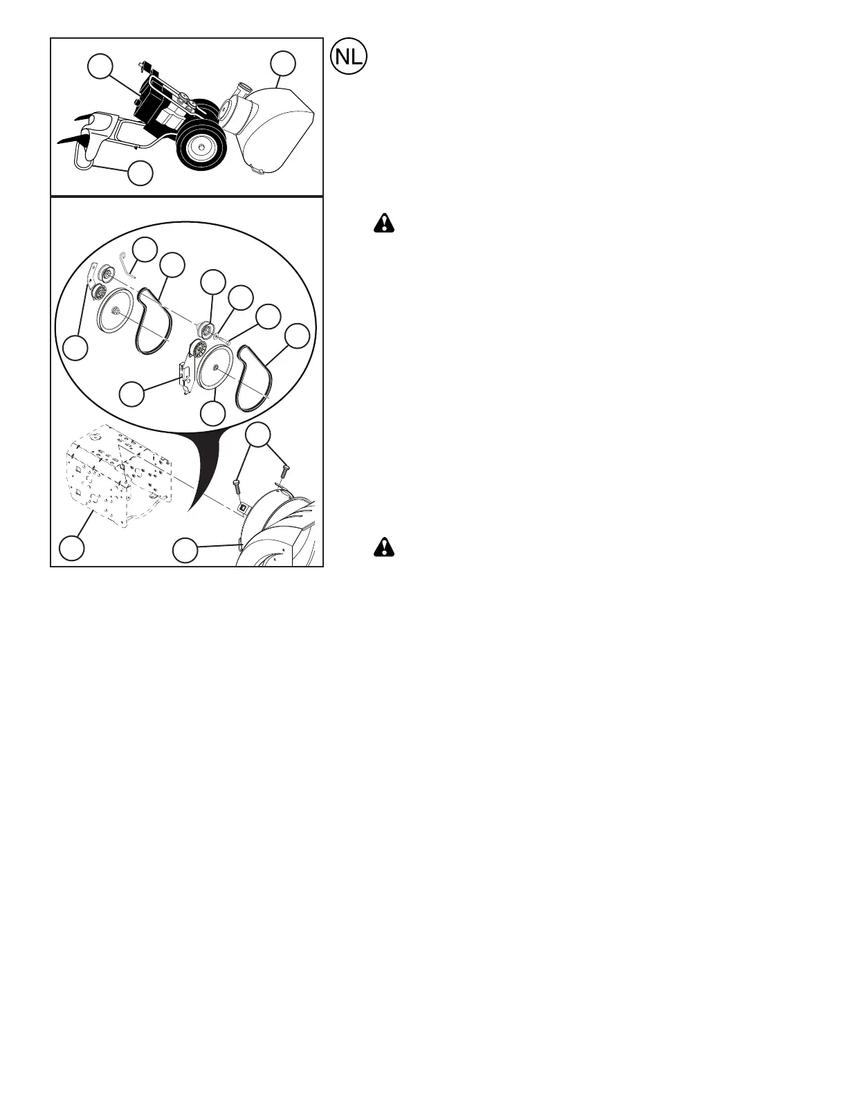WAARSCHUWING: Als de laatste riem is verwijderd, dient uw as-