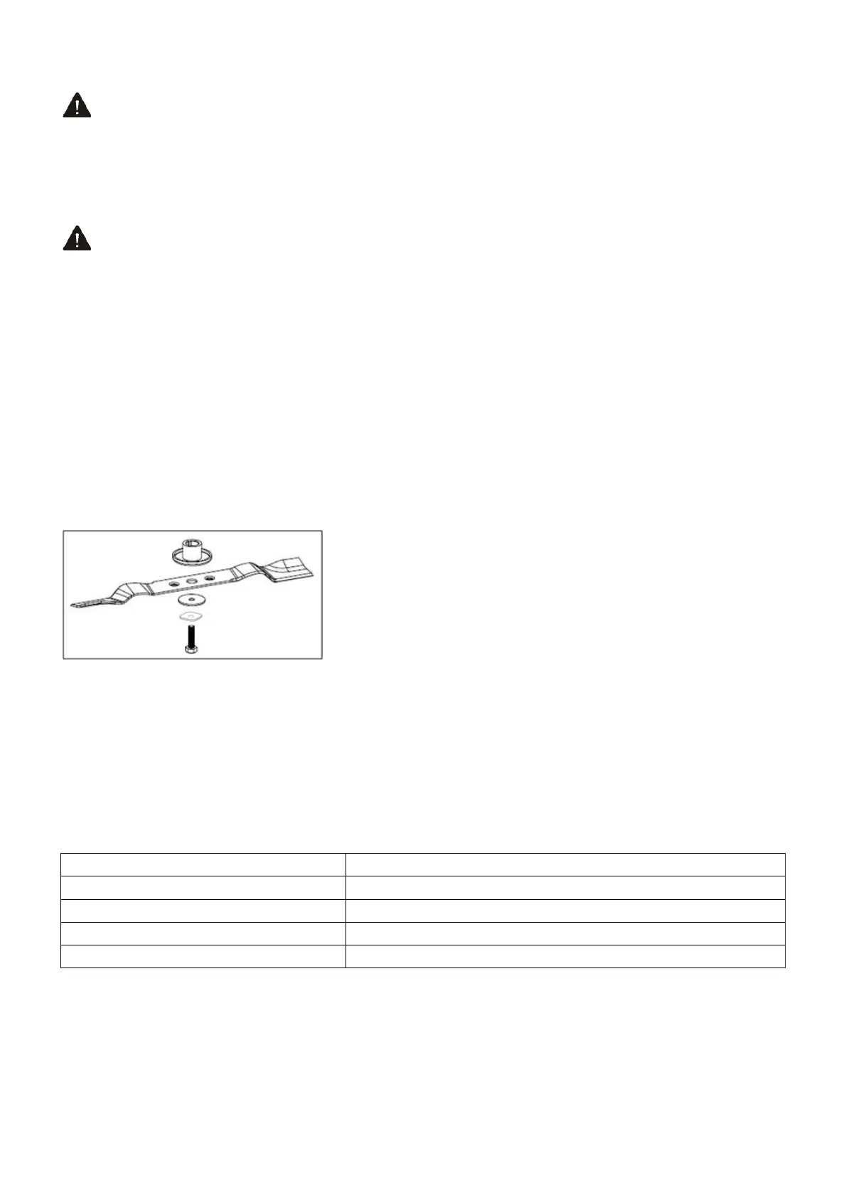 balance will result in excessive vibration causing eventual damage to the engine and mower. The blade can