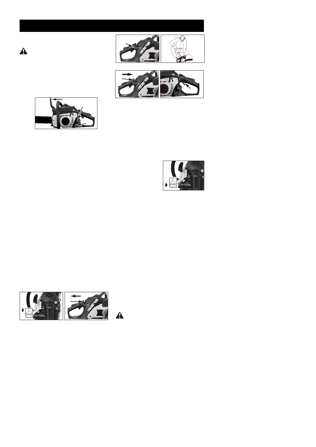 4. Položte pilu na zem, přední rukojeť pevně