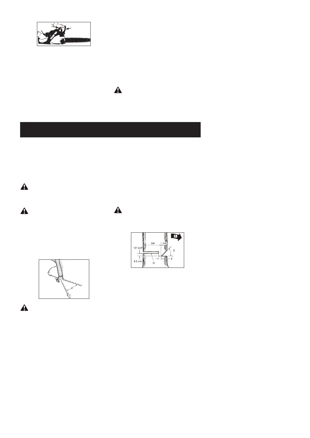 Effectuez la coupe d'abattage (D) de l'autre côté du