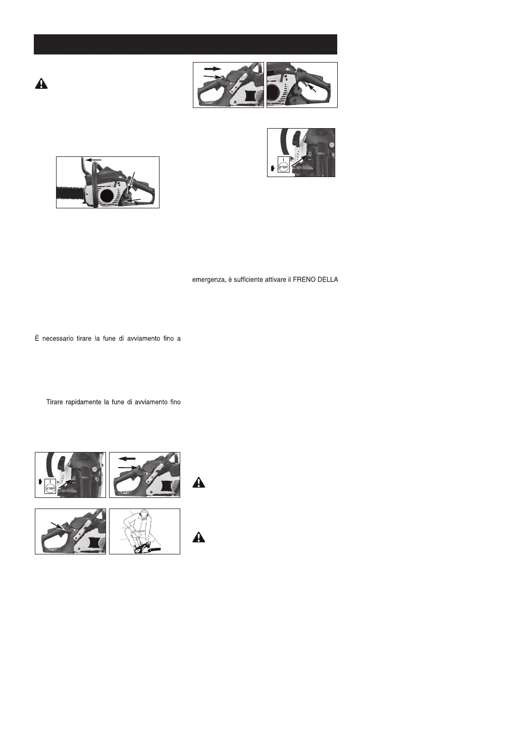 arresta, spegnere il motore e portare la sega al