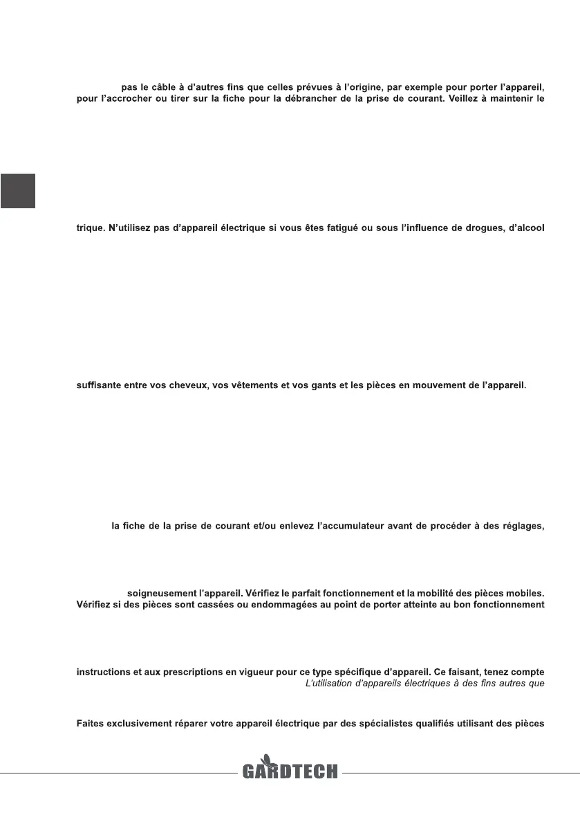 de l’appareil électrique. Avant d’utiliser l’appareil, faites réparer les pièces endommagées. De nombreux