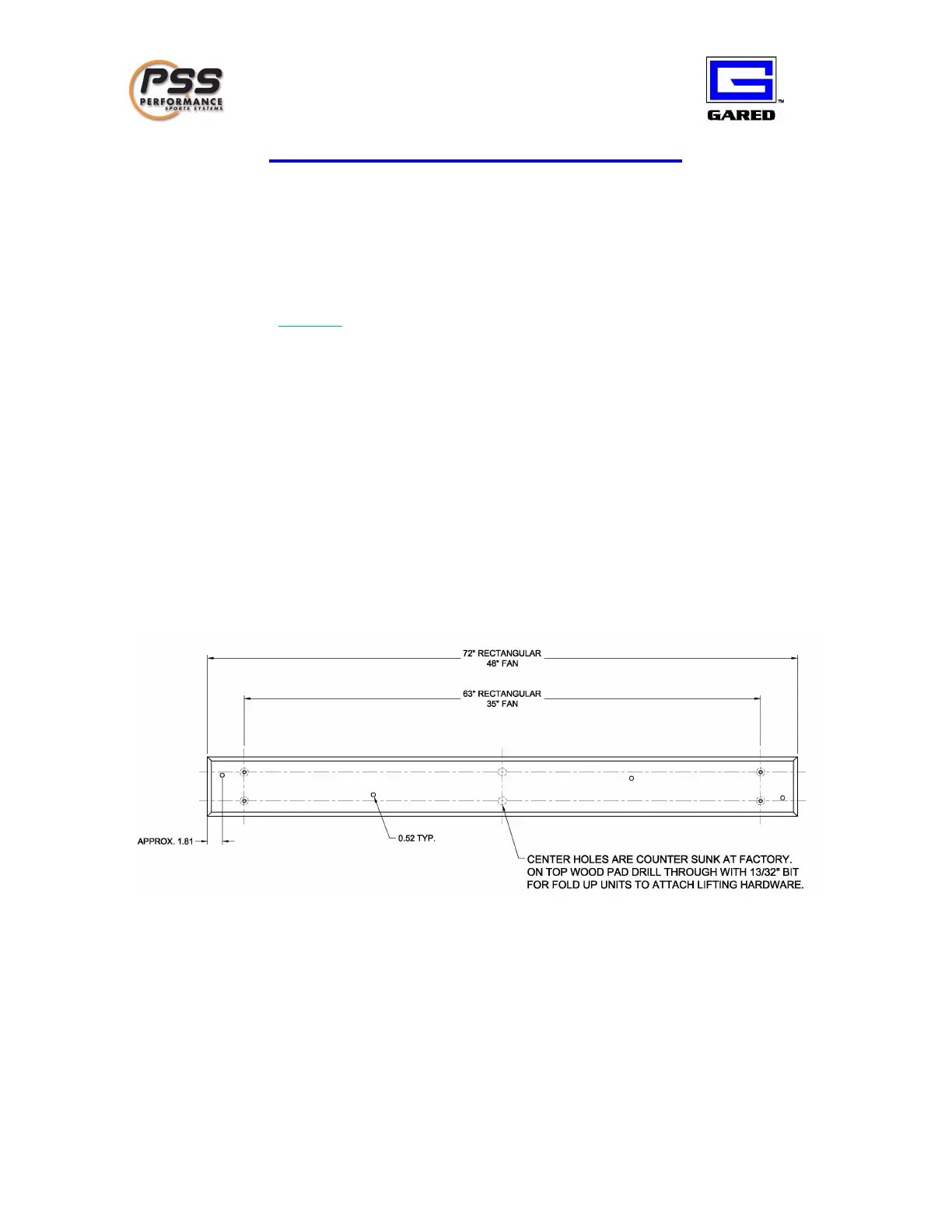 with predrilled bracket locations spaced 63” center to center. Wood pads for fan shaped