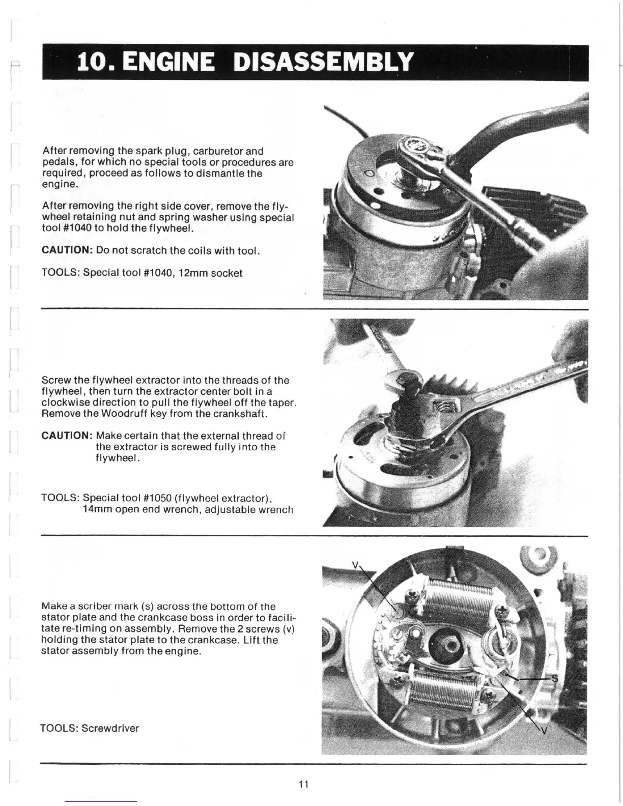Garelli 49cc - 10. Engine Disassembly; Flywheel Retention and Removal