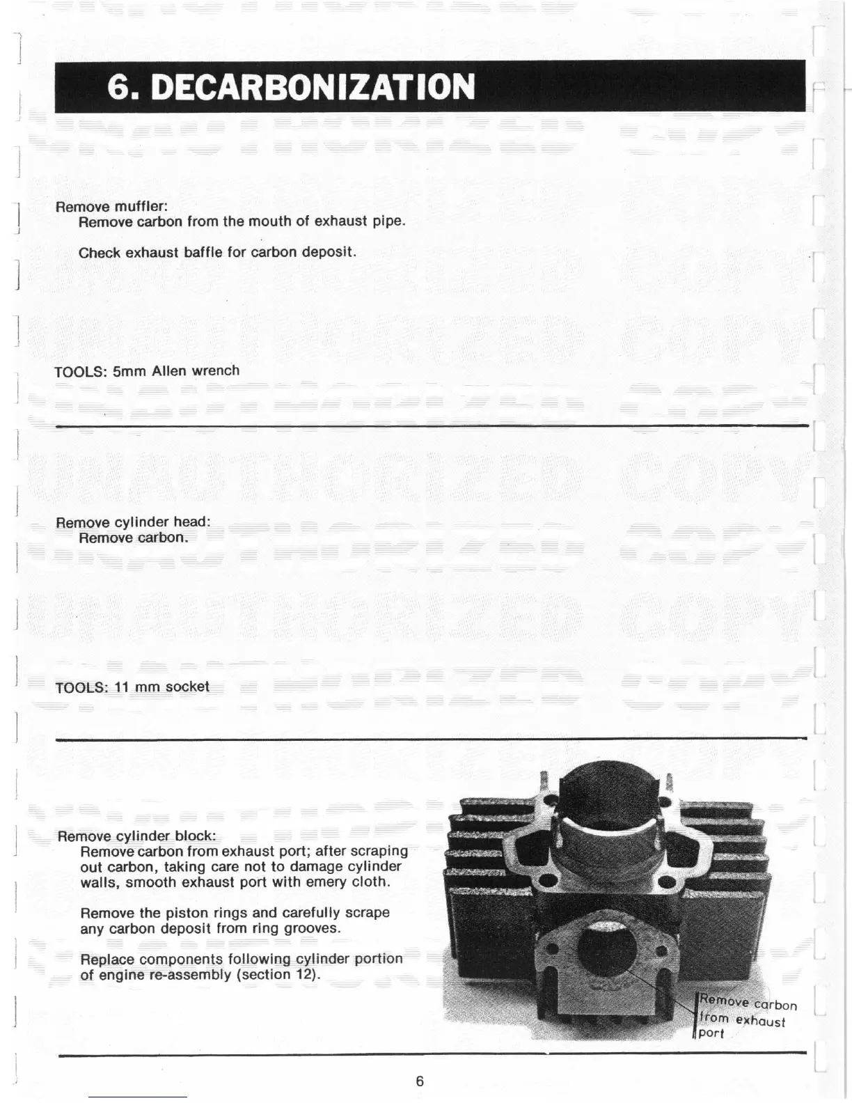 Garelli 49cc - 6. Decarbonization; Muffler Carbon Removal; Cylinder Head Carbon Removal; Cylinder Block Carbon Removal