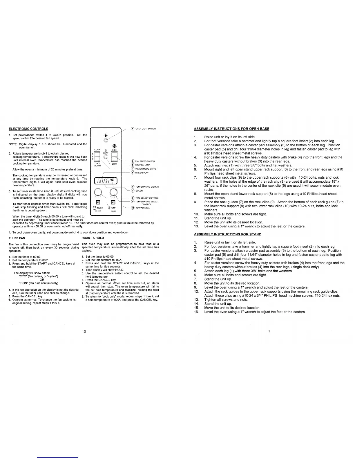 Garland ECO-E-10-E - Electronic Controls Operation; Setting Temperature, Fan Speed, and Timer; Pulse Fan and Roast & Hold Modes