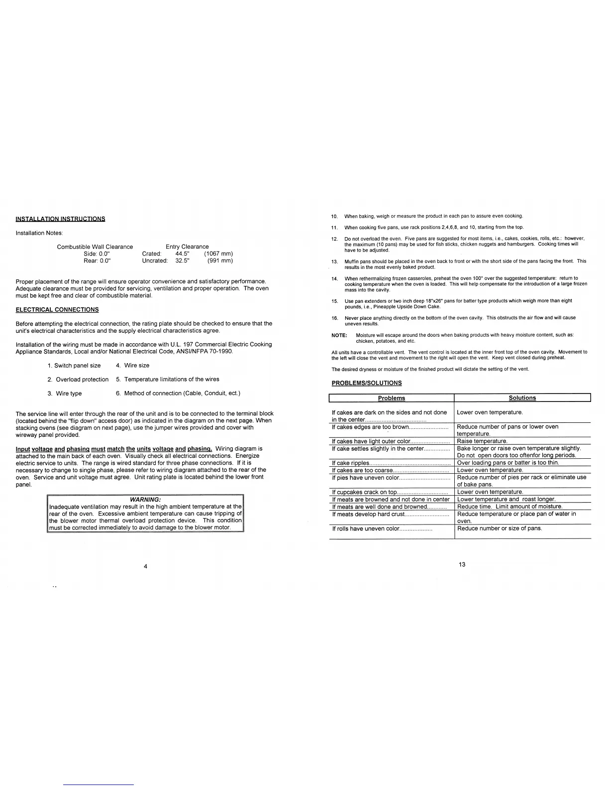 Garland ECO-E-10-E - Installation Instructions; Clearance Requirements; Electrical Connection Guidelines; Ventilation Warning