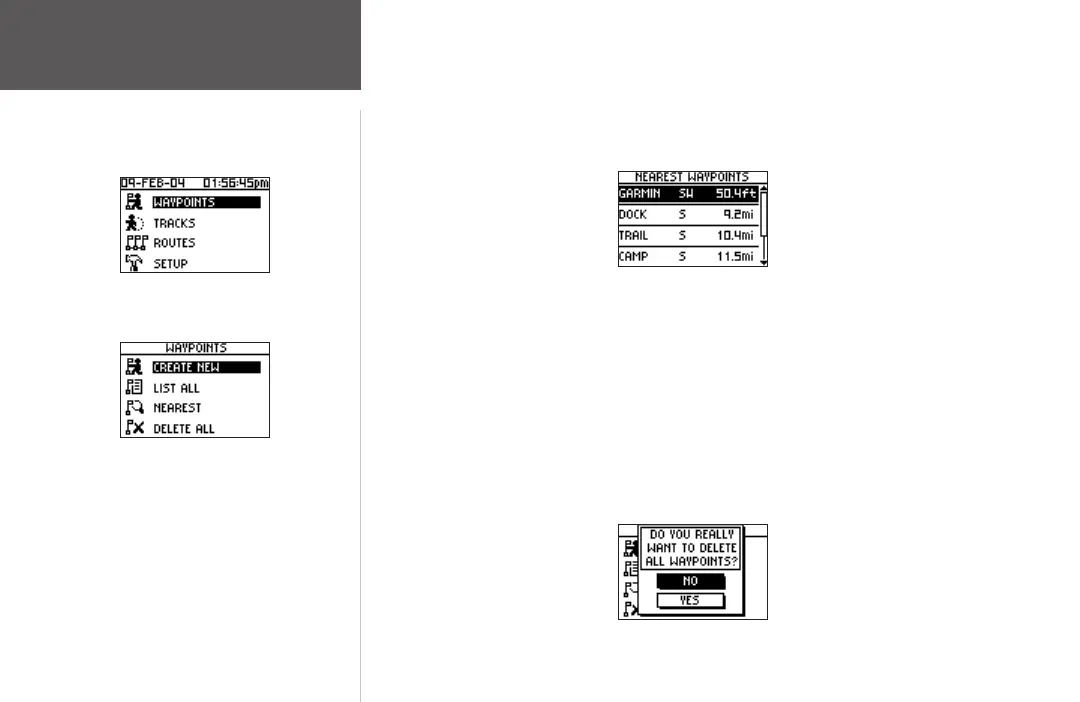 1. From the Main Menu Page press the UP or DOWN button to highlight ‘WAYPOINTS’,
