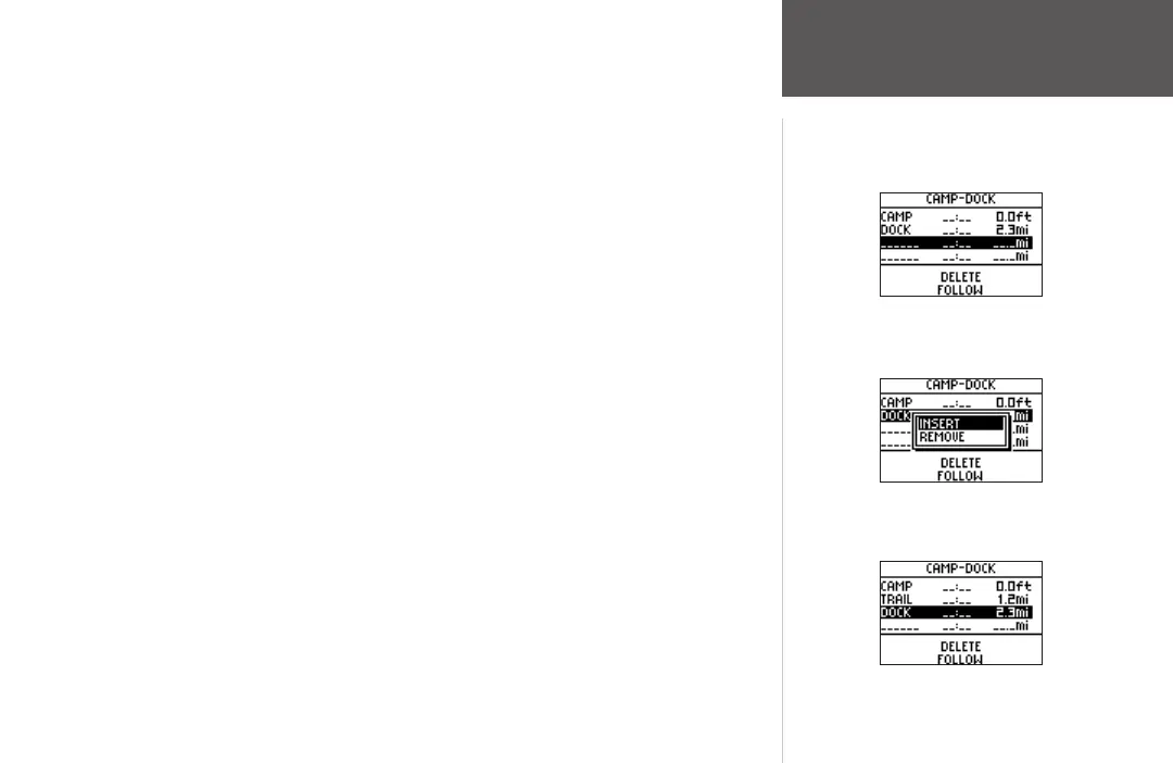 1. With the Route Page displaying, use the UP and DOWN buttons to select the waypoint