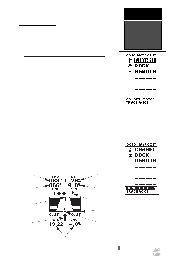 2. The GOTO waypoint page will appear, displaying all the