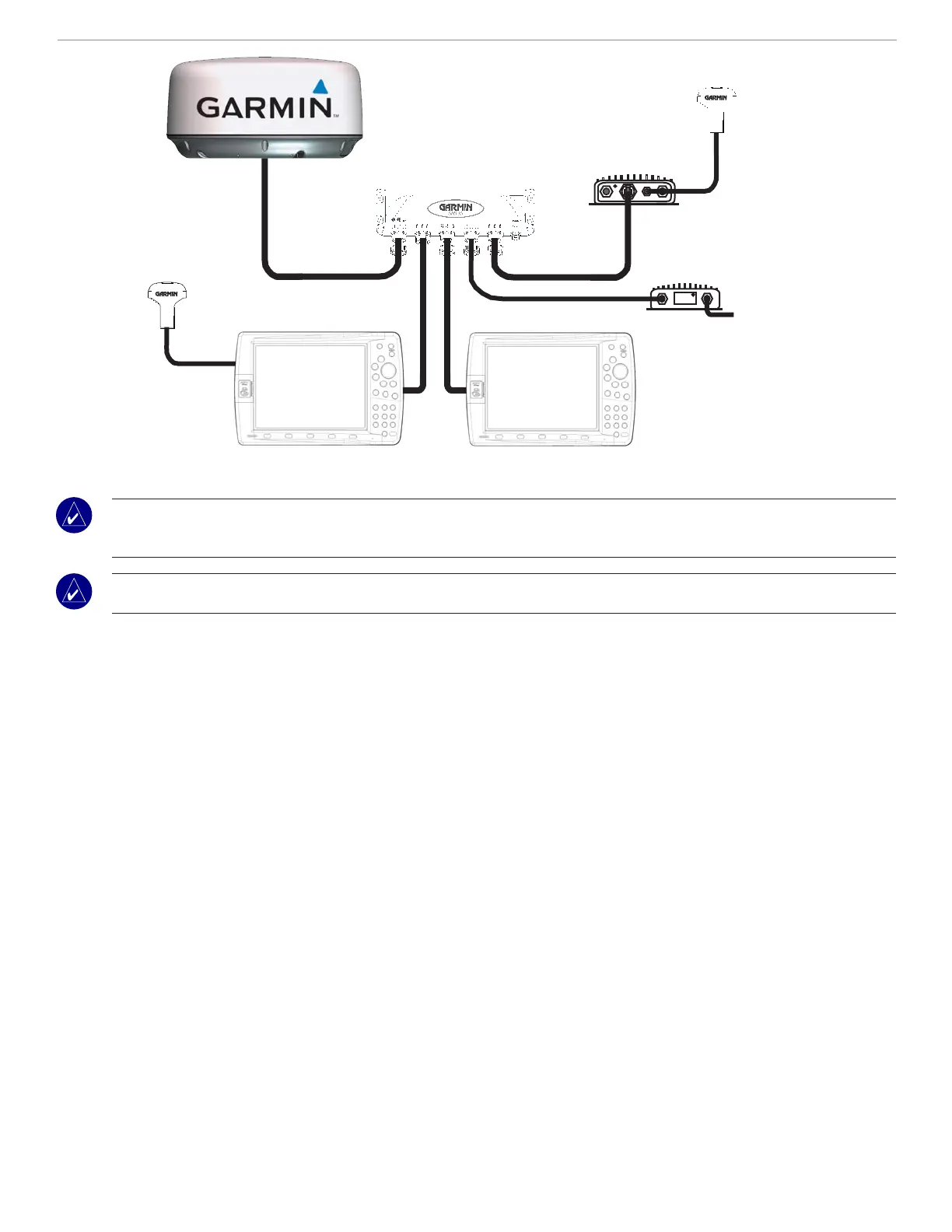 NOTE: The GMR 18, Garmin MFD, and the other network components must be connected to a power source according to their installation