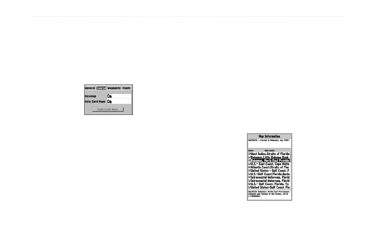 MapSource data loaded in the unit or on the data card.