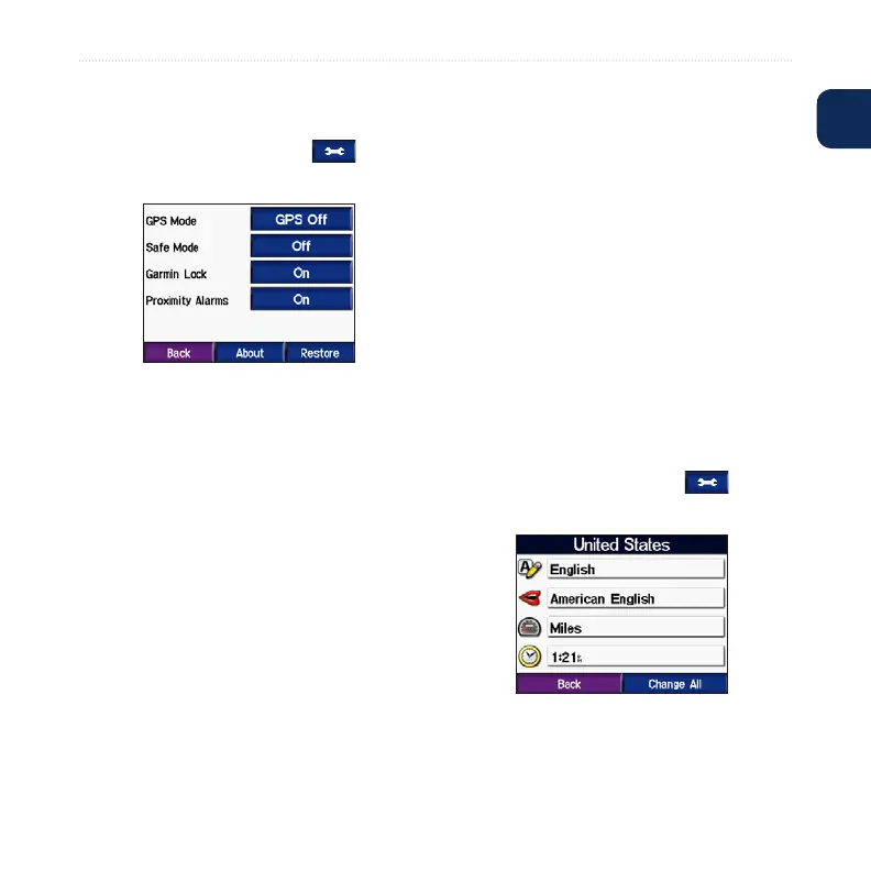 Proximity Alarms—turn on or off the