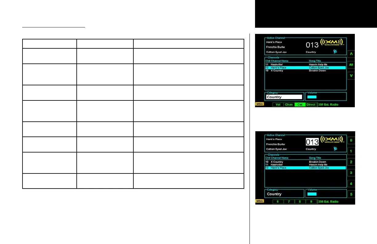 XM Audio Radio Categories
