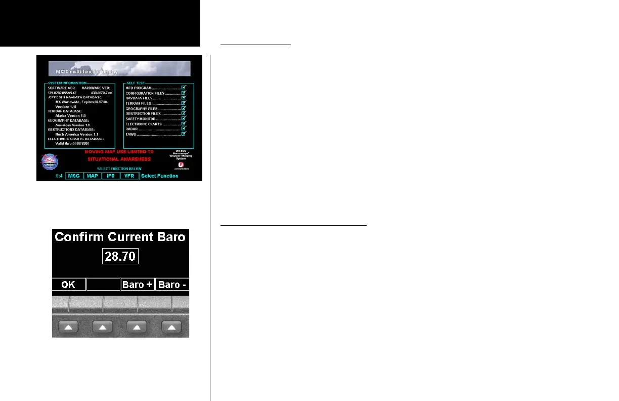 information is shown that provides the MX20 software and database versions. The results of the self test are