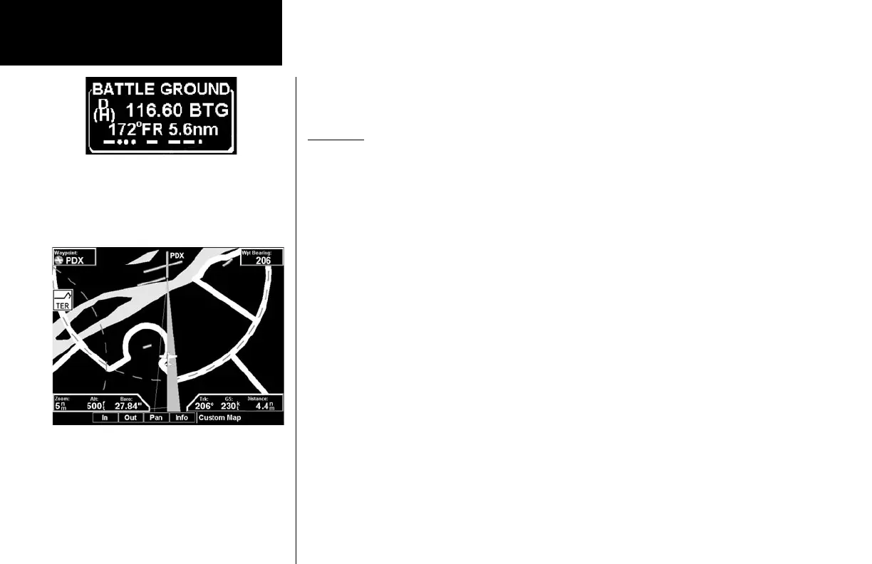 the appropriate airport runway. The SL30 Nav function provides an overall graphic view of the selected airport