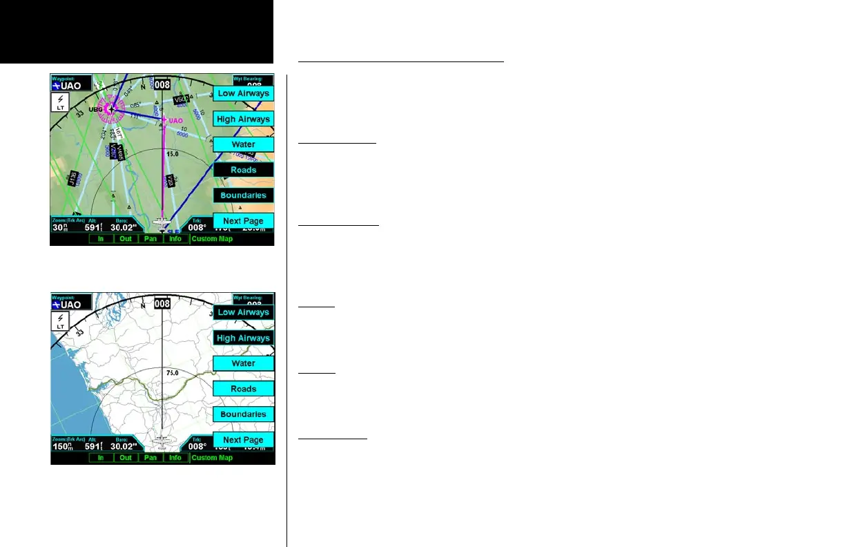 The third option page of the Custom Map function lets you select options for the choices of Low Airways,